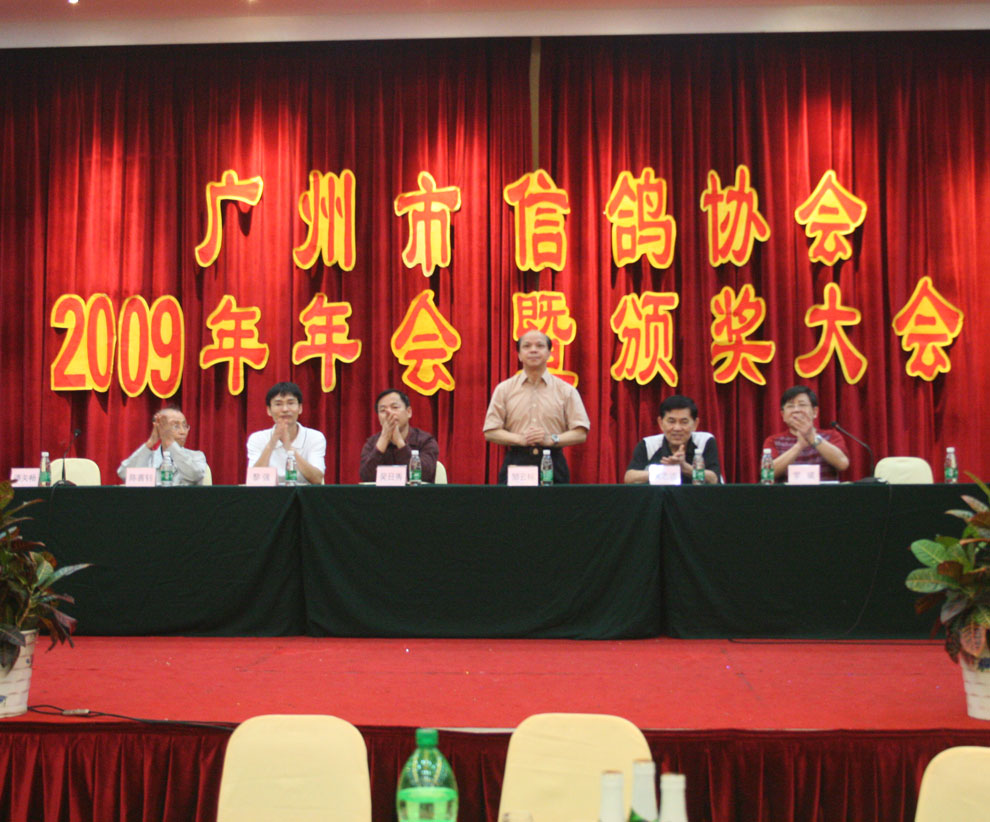 广州市信鸽协会年年会暨颁奖大会在广州召开,会议由谭关畅主持,广州市信鸽协会秘书长罗斌做年度工作报告,广州体育总会副主席吴日秀讲话,广东省信鸽协会领导讲话,裁判长谢坚宣布广州市信鸽比赛各项比赛成绩,最后大会进行颁奖参加本次会议有广东省信鸽协会主席邹云标、广东省信鸽协会常务副主席黄志远、广州市体育中心业务部部长黎强、广州市信鸽协会名誉主席朱穗风、广州市信鸽协会顾问陈善钊等,以及各区县、俱乐部、公棚的代表,当地新闻媒体、中国鸽网也参加了会议并对会议进行了报道。