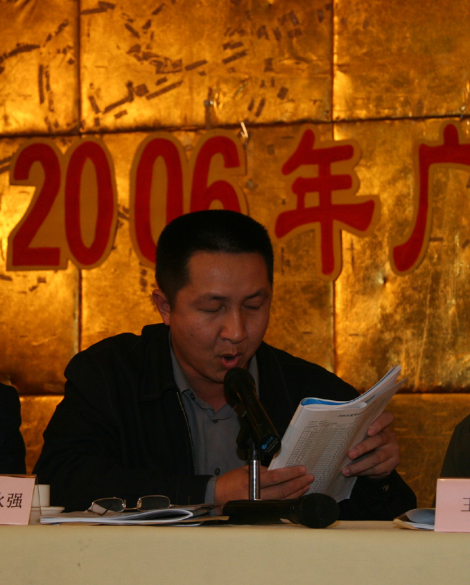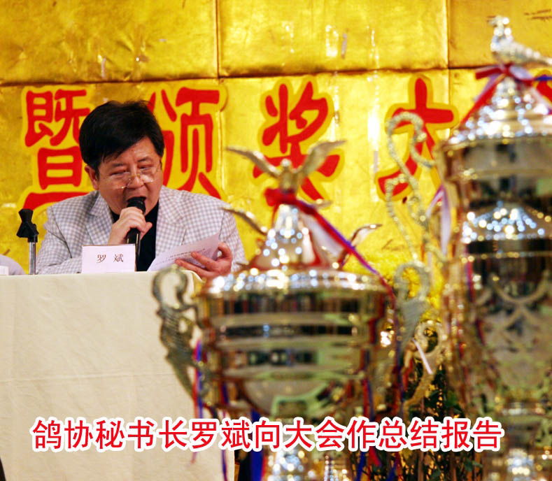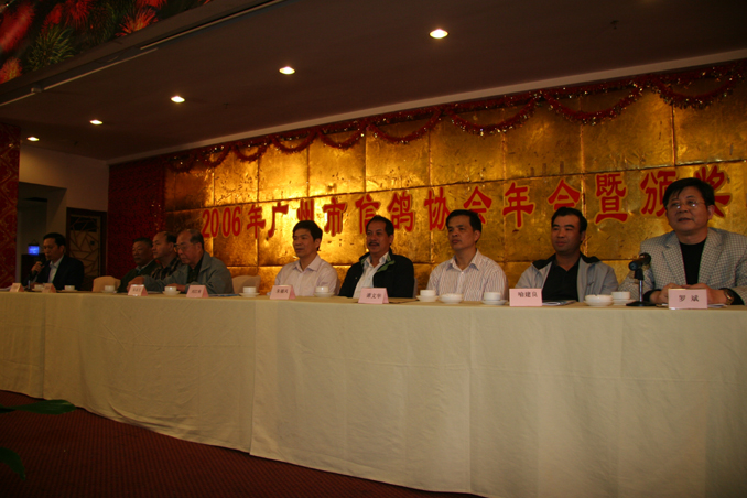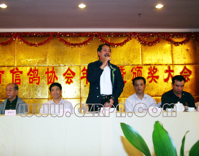 广州鸽协裁判长谢坚在大会上宣布2006年各项比赛成绩
