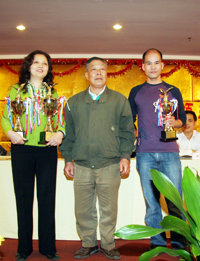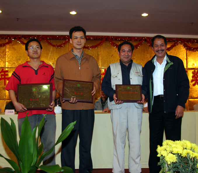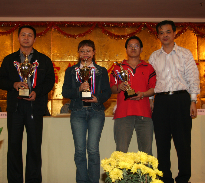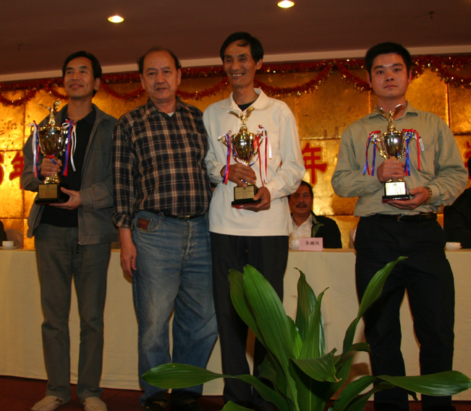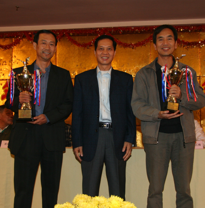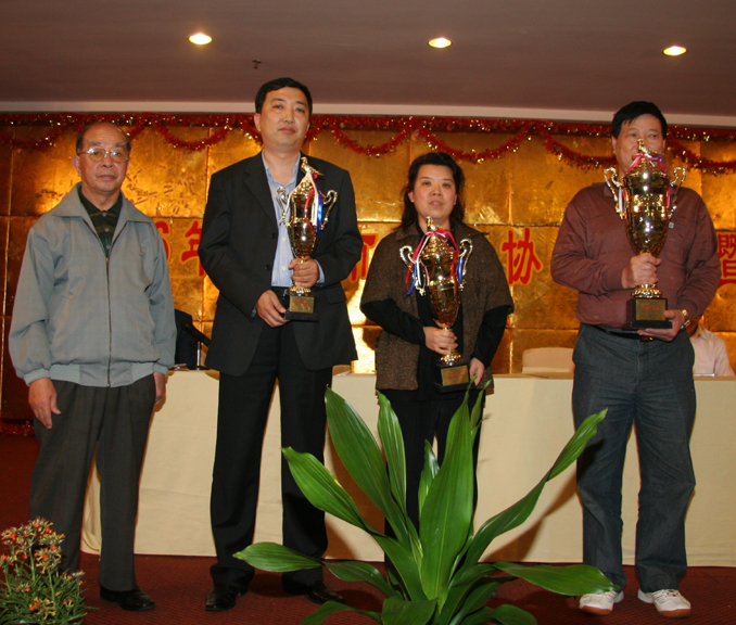 冠军黄凤喻(左一纪军)、亚军李向东(右二)、季军黄伟民(左二)颁奖