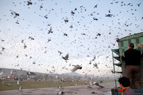 2007年,为缓解与四川、重庆地区鸽协在赛线和放点的矛盾,由中国信鸽协会主办的2007年信鸽国家赛,平凉赛区的四川、重庆与第二届四川省平凉大赛同时于4月14日提前举行。早晨7点21分,多云见晴,偏北风2-3级,7021羽赛鸽在甘肃平凉赛区司放点平凉城东飞机场顺利放飞。来自四川、宁夏、甘肃和中国火车头行业体协的七万羽信鸽在这里放飞。其中有7000羽参加全国比赛,5万羽信鸽参加四川省联翔赛。武威信鸽协会的50羽信鸽将参与全国比赛,使用车辆33辆。此次比赛,走的是北线,由北向南飞。有望下午3时左右见鸽!但下午的能见度不算好,有薄云雾状,太阳没有完全出来,隐在云里,气温显得有些闷热,此时川渝两地不知有多少鸽友在翘首盼望着爱鸽回归?