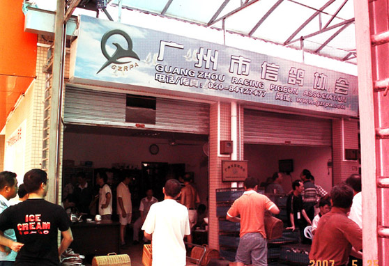 第二届广州-衡阳对抗赛2007年5月25日如期集鸽,虽然天气不理想,湖南至广州一线有阵雨,但是双方商定不改期为上.主要理由是现在的天气很难掌握,这个月份说是有雨往往还是出太阳,主要按照裁判法要求:“有雨待停,有雾待清”操作,同等条件就OK了!图为广州市信鸽协会集鸽现场。