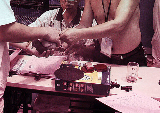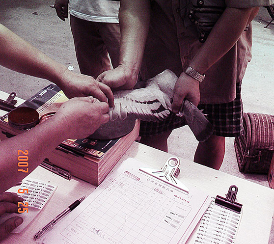 第二届广州-衡阳对抗赛2007年5月25日中午双方约定同时集鸽.图为广州集鸽现场