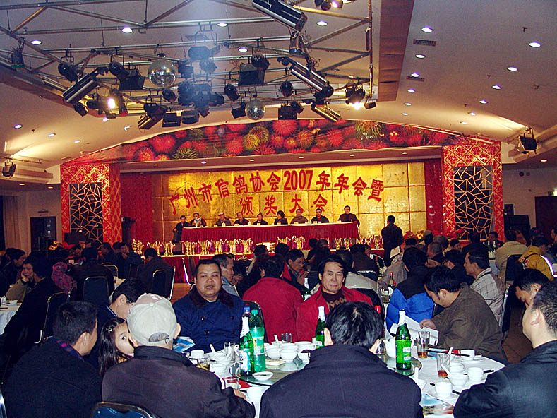 2008年2月1日下午,广州鸽协在革新路红帆酒店召开2007年年会暨颁奖大会,广州市体育局副局长张桦,代表体育局到会讲话并颁奖。她希望广州鸽友利用“奥运年”把信鸽赛事搞得更加精彩、圆满,为奥运在北京召开做出贡献。省鸽协副主席陈善钊到会讲话,对广州鸽协近年来的工作做了充分肯定,并要求广州带好头,组织好今年8月8日8点8分的南粤“八万信鸽”迎奥运活动。(谭新华摄影、广广报道)