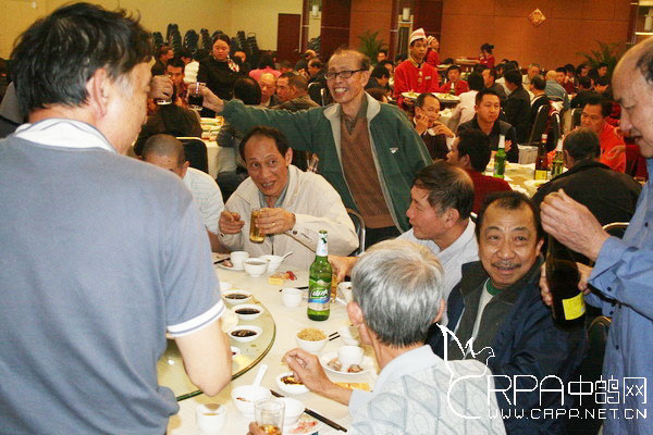 广州市信鸽协会顾问、广州鸽界老前辈陈善钊给大家敬酒,陈老今年83岁,身体健康精神矍铄,是广州文明养鸽、健康养鸽的表率